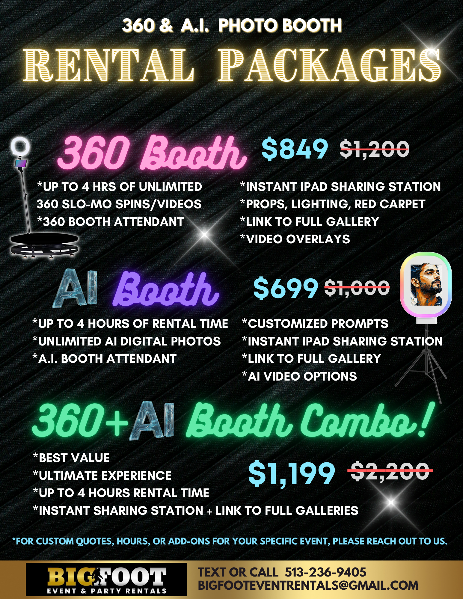 Cincinnati & Dayton area’s premier destination for 360 Photo Booth & AI Photo Booth Rentals.